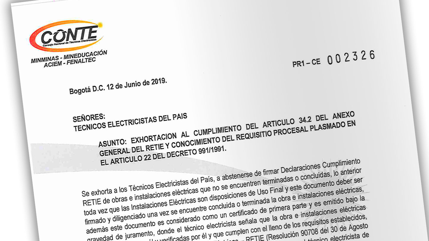 Exhortación al cumplimiento del Artículo 34.2 del Anexo General del RETIE y conocimiento del requisito procesal plasmado en el Artículo 22 del Decreto 991/1991.Continue Reading