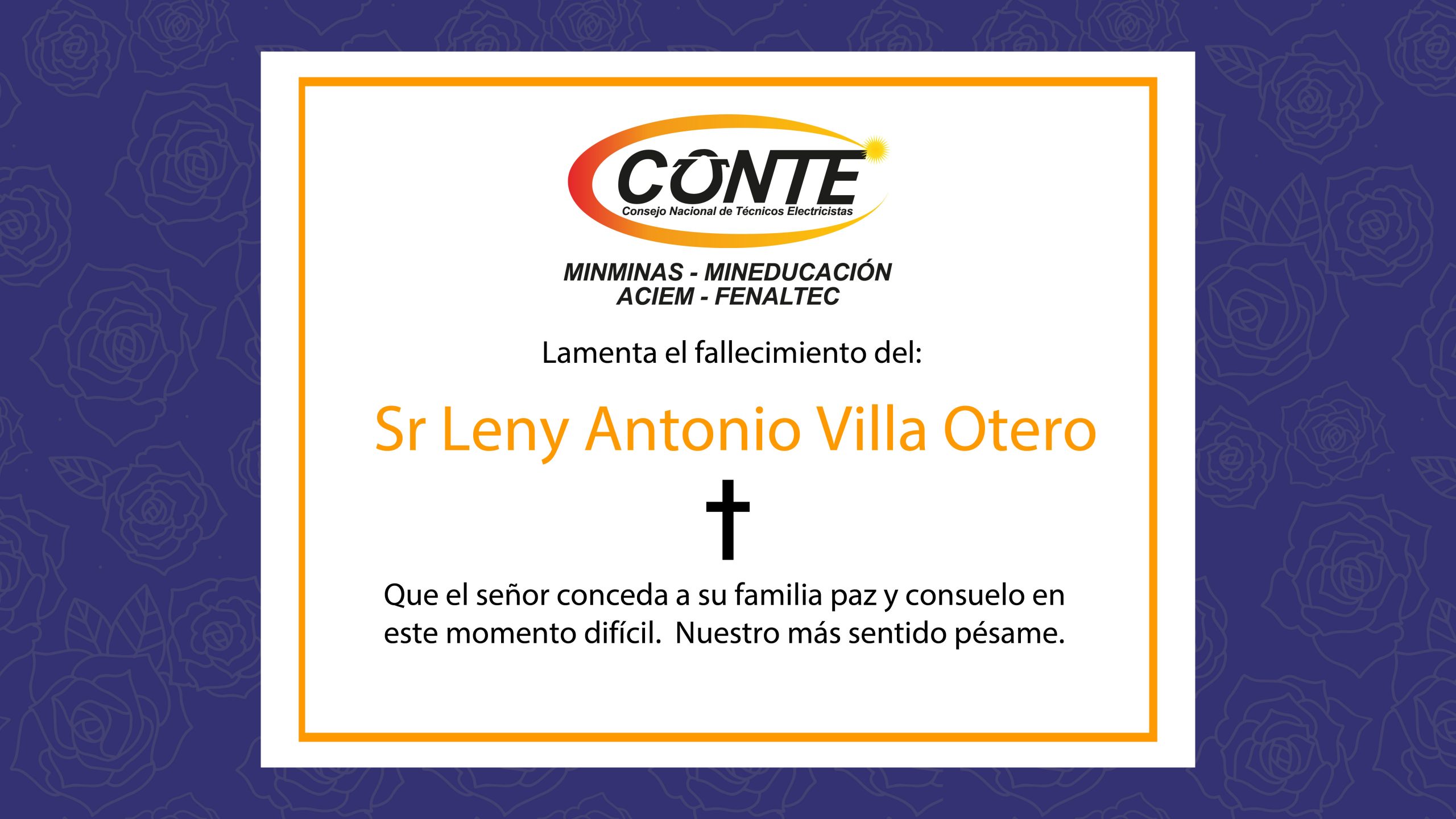El Consejo Nacional de Técnicos Electricistas lamenta el fallecimiento del señor Leny Antonio Villa Otero. Extendemos nuestra más sentidas condolencias a Yarelis Villa y Edwin Torres junto a todos sus seres queridos.