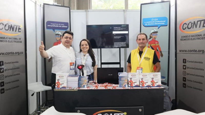 Como expositor, el CONTE socializó tanto para Técnicos Electricistas como para usuarios sobre la importancia de la Matrícula Profesional, al igual que los procesos para cada uno de sus trámites y la obligatoriedad de contratar personal idóneo, calificado y certificado; esto desde el Stand No. 277 – Pabellón Azul del Centro de Convenciones.
