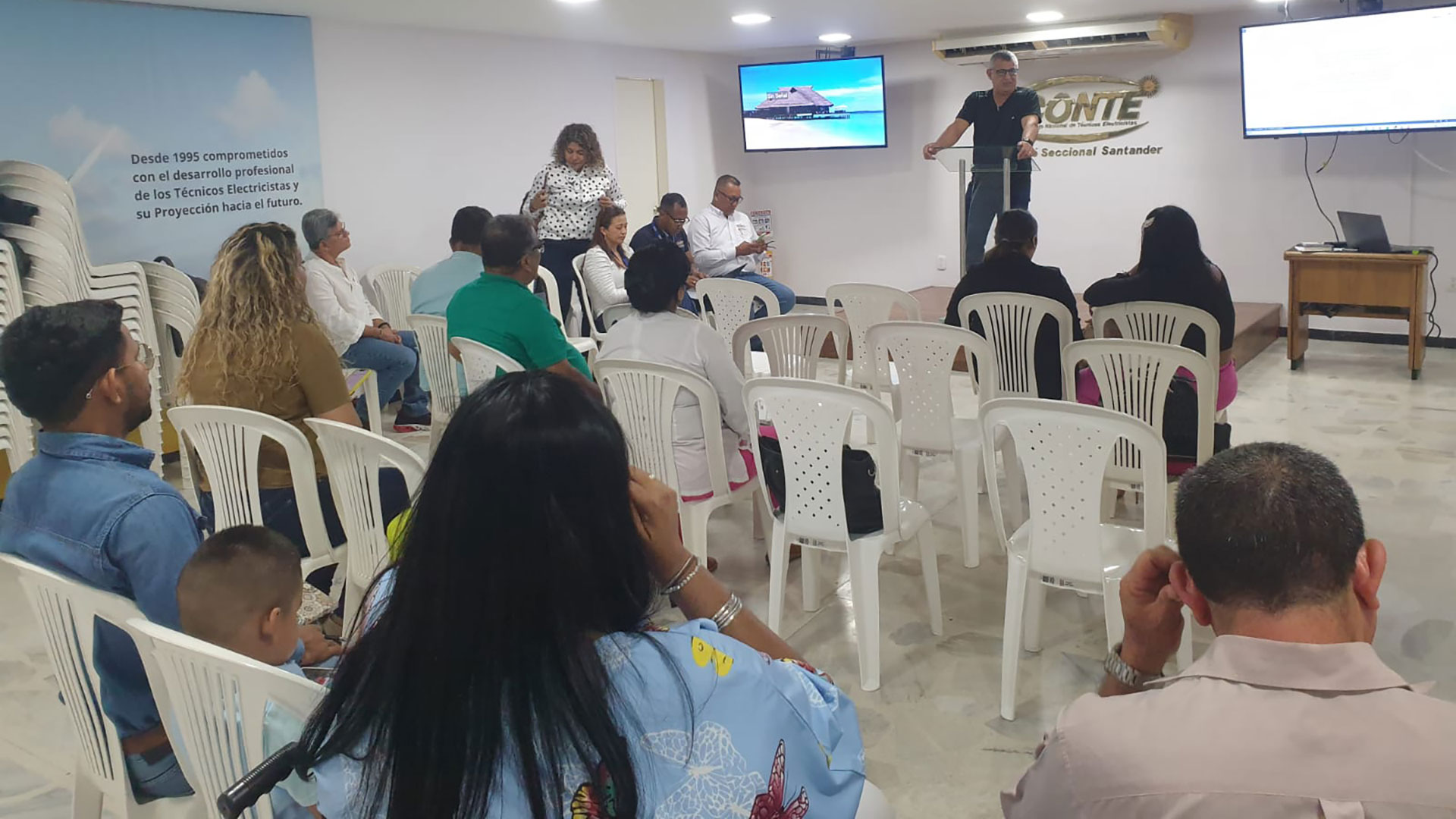 El evento contó con la participación de William Marín, Presidente del Consejo Nacional de Técnicos Electricistas CONTE y los directores de los institutos técnicos CENTAC, COREINSA, UTC y MAKITEC, de igual forma con la presencia de la Secretaría de Educación de Barrancabermeja; el objetivo del conversatorio fue resolver las inquietudes presentadas por las Instituciones de Educación para el Trabajo y Desarrollo Humano IETDH en relación a los registros de programas laborales y académicos en el marco normativo vigente y, que apliquen para el trámite de la matrícula profesional de técnico electricista ante el CONTE.