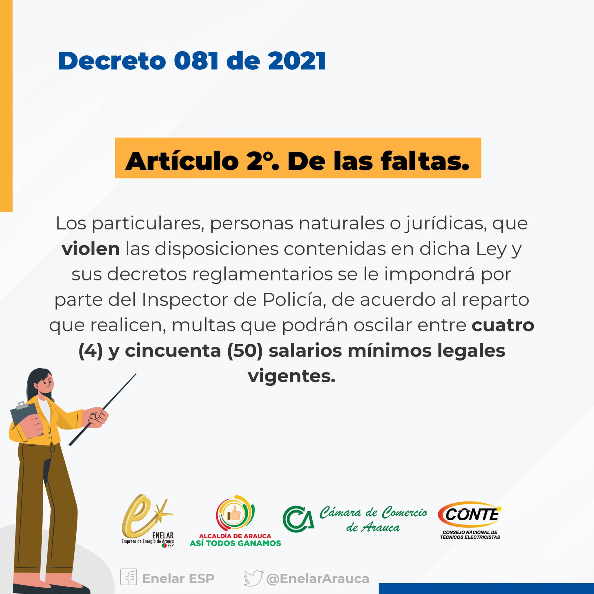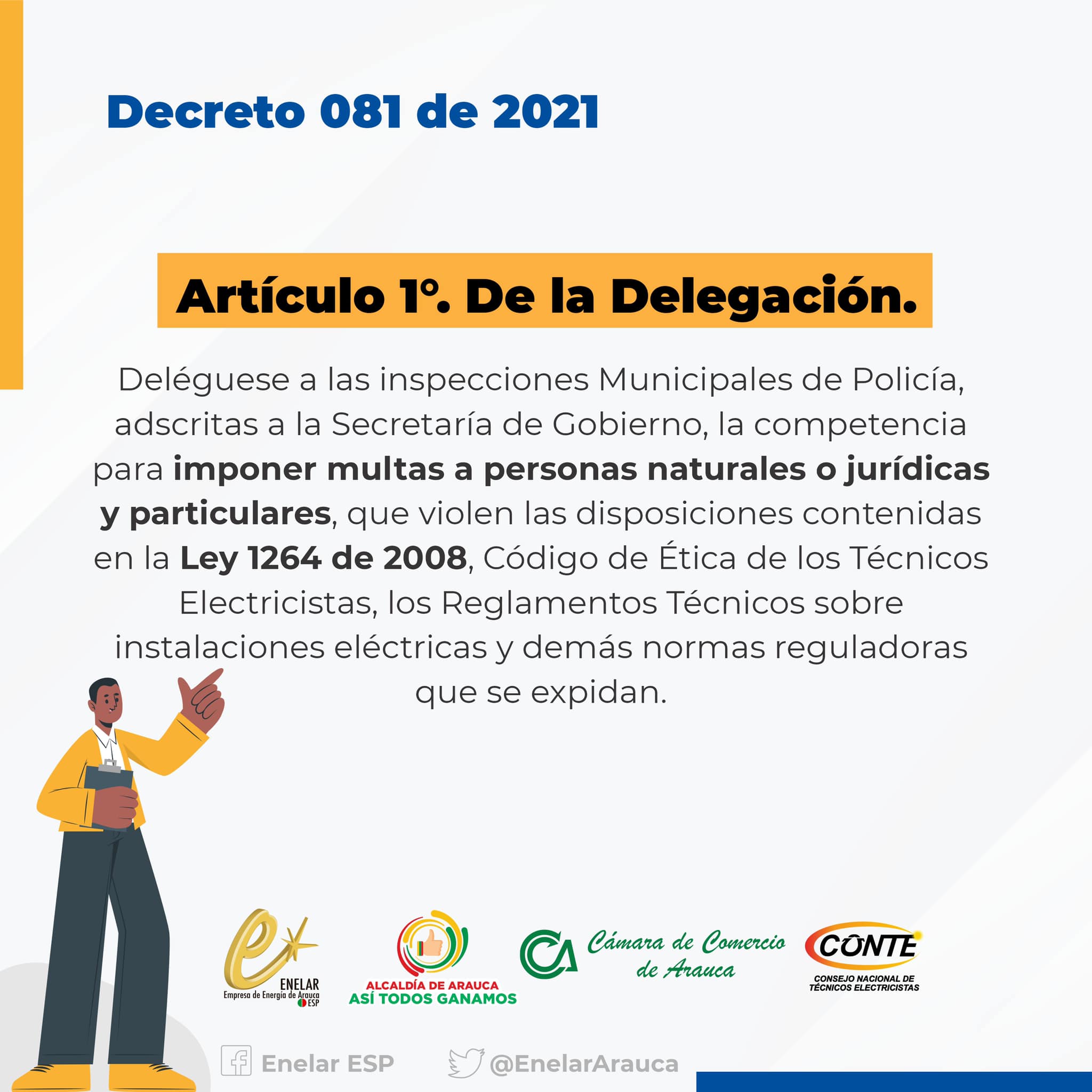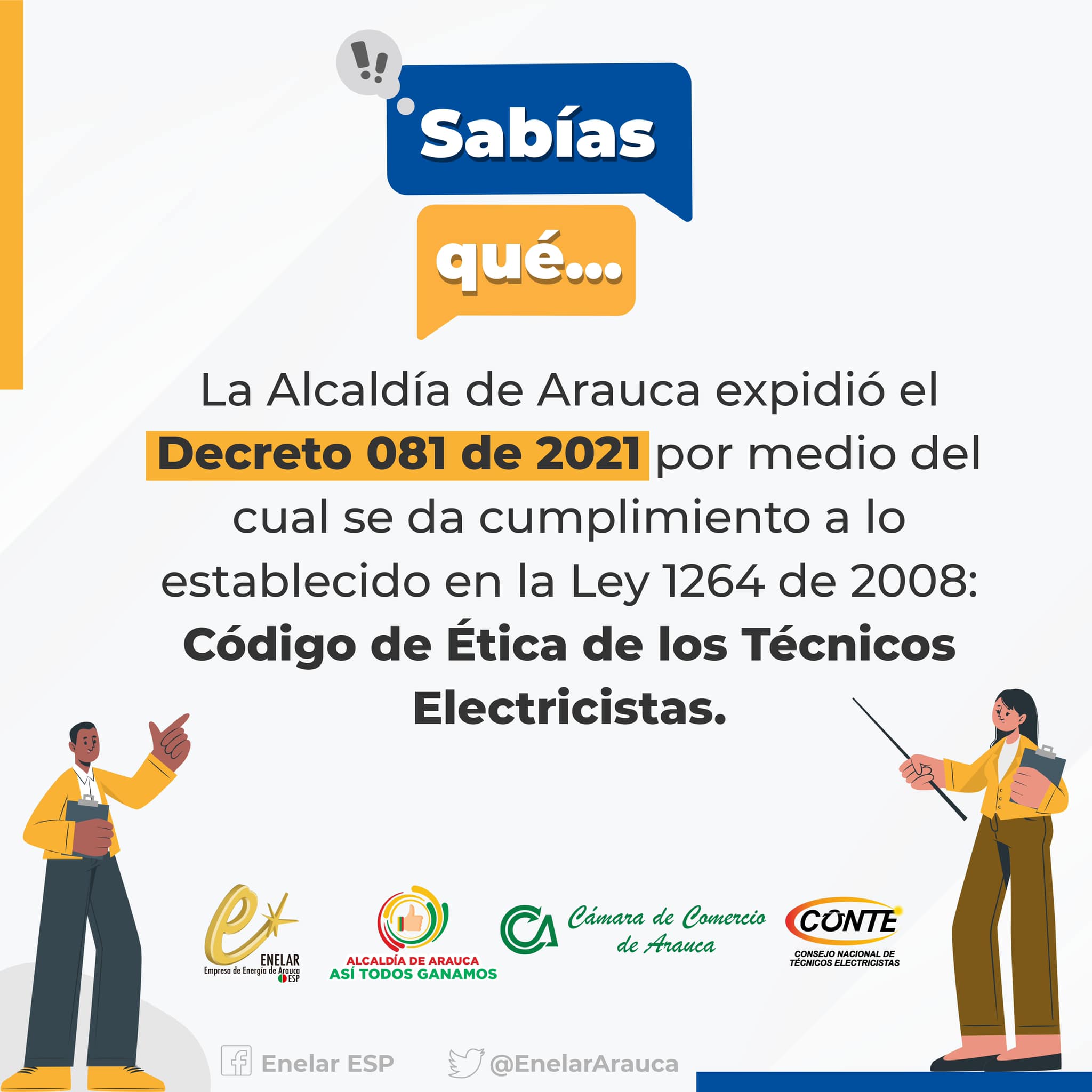 El pasado 4 de agosto de 2022, el Consejo Nacional de Técnicos Electricistas CONTE junto con la Empresa de Energía de Arauca ENELAR E.S.P., la Escuela de Educación para el Desarrollo de Colombia ESEDCO y la Asociación Araucana de Técnicos Electricistas AATE, ofrecieron una capacitación en el Auditorio Trino Torres, en el municipio capital de Arauca.