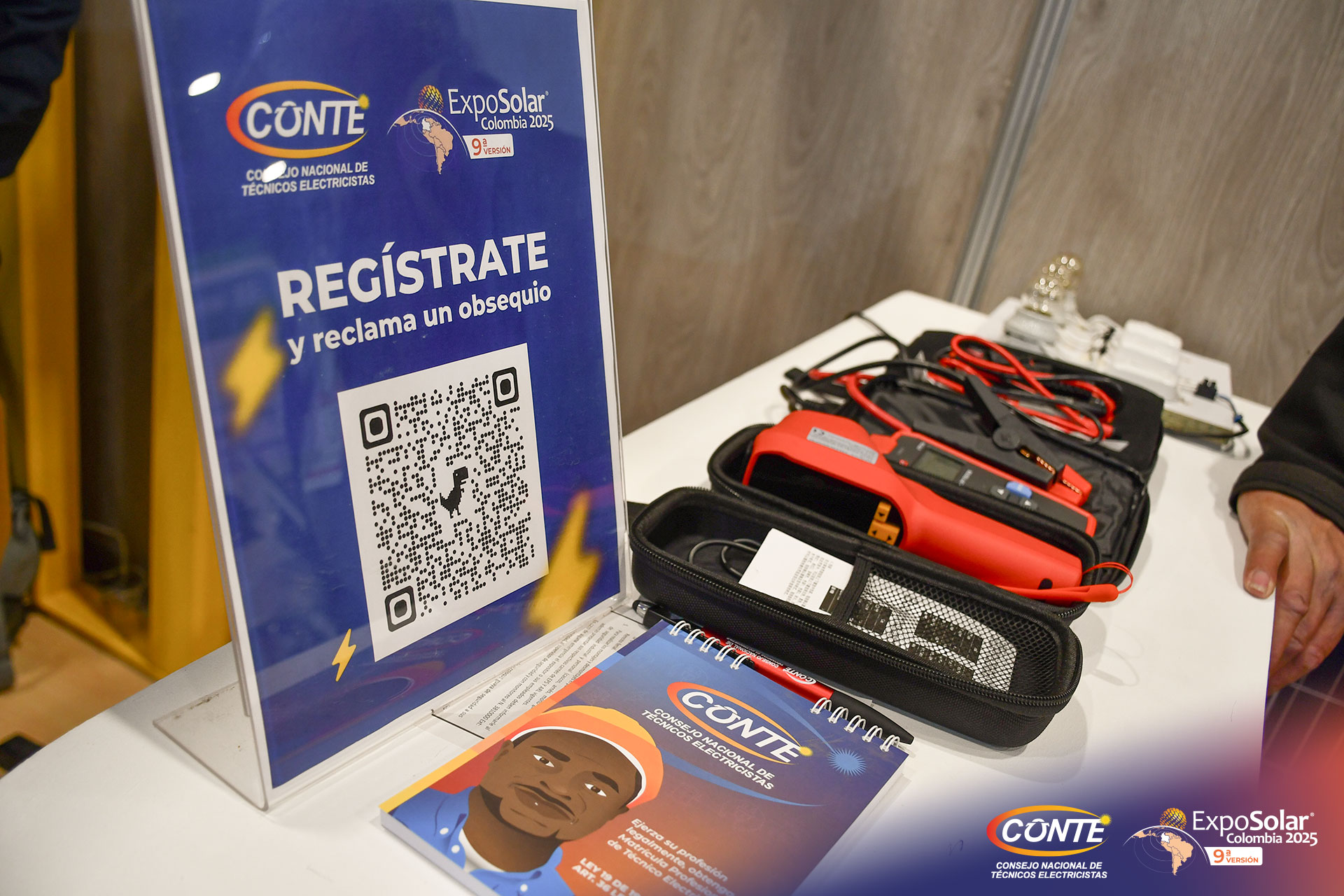 El Consejo Nacional de Técnicos Electricistas (CONTE) participó como expositor en la feria, socializando la importancia de la Matrícula Profesional para los técnicos electricistas en Colombia y reafirmando su compromiso con la actualización técnica y la adopción de nuevas tecnologías para el uso eficiente de la energía de cara a la transición energética.