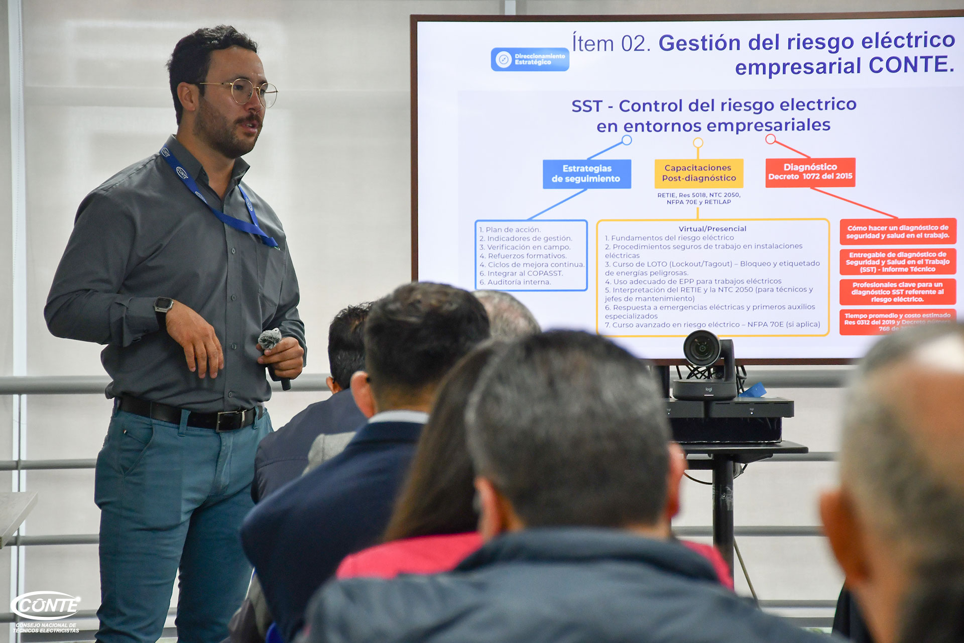 El encuentro contó con la participación presencial y virtual de representantes de la Asociación Nacional de Empresarios de Colombia (ANDI), Academia Nikola Tesla, Asociación Colombiana de Acondicionamiento del Aire y de la Refrigeración (ACAIRE), Asociación Colombiana de Energía Solar (ACOSOL), Asociación Colombiana de Luminotecnia (ACDL), Asociación de Tableristas Eléctricos de Colombia (ATEC), Escuela Tecnológica Instituto Técnico Central (ETITC), Grupo Sayros, Luminotest, Unidad Técnica Ozono Colombia, Ministerio de Minas y Energía, C. Ochoa Ingeniería S.A.S., Thermo Wire, Universidad Central, Federación Nacional de Técnicos Electricistas y Afines de Colombia (FENALTEC) y, como anfitrión, el Consejo Nacional de Técnicos Electricistas (CONTE).